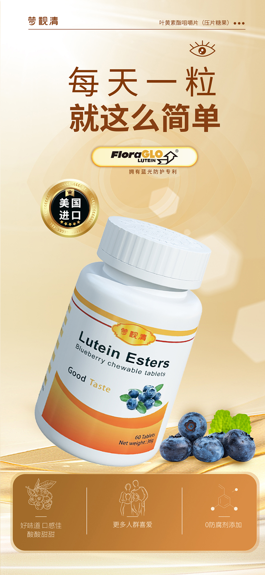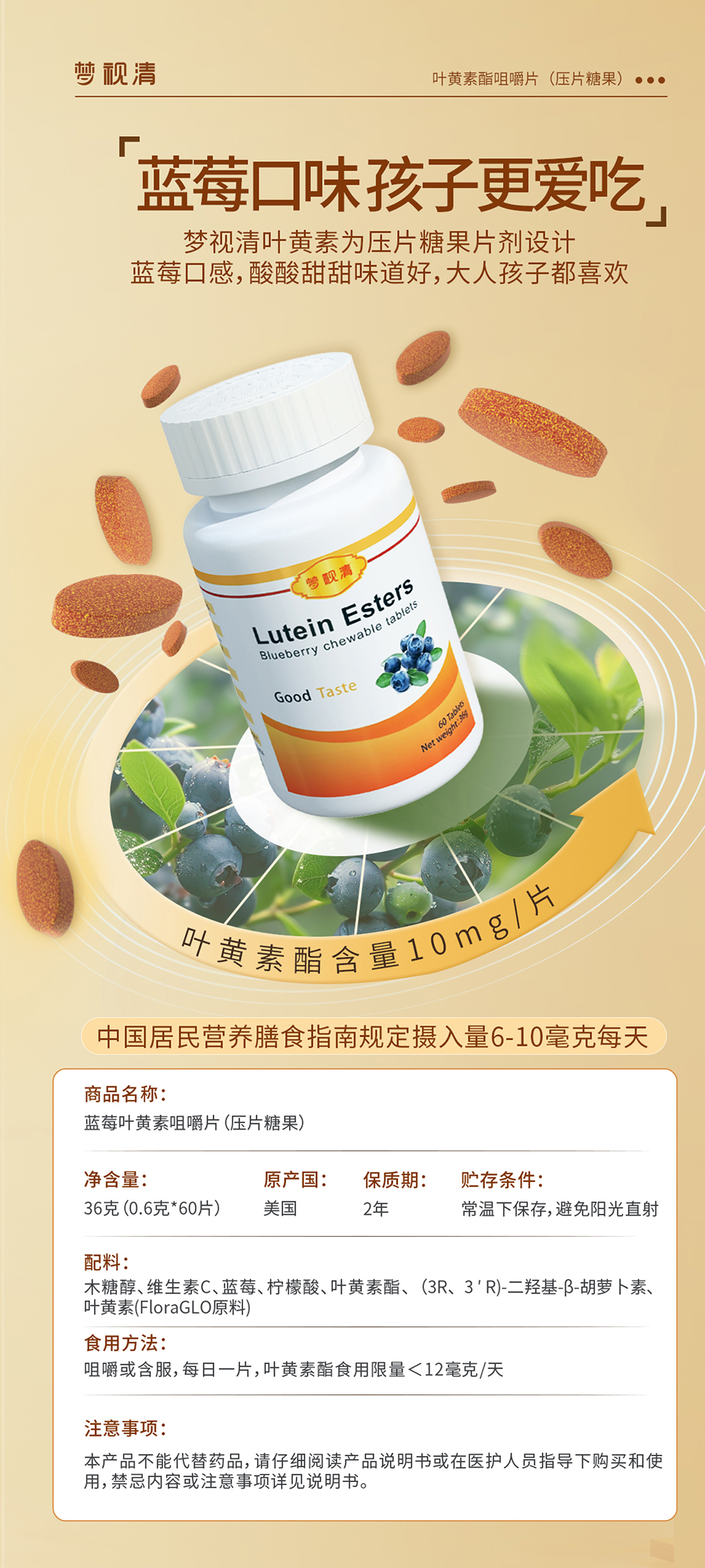 PA直营|中国官网:梦视清蓝莓叶黄素咀嚼片